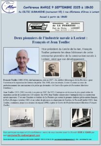 Il présentera les deux bâtisseurs de cette entreprise pionnière de la construction navale à Lorient, ainsi que son développement.